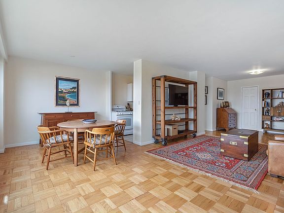 This spacious 3 bedroom/2 bath corner apartment is flooded with sunshine all day long. The eastern, southern and western exposures offer sweeping views of eastern NYC, lower Manhattan, and the Palisades. You can start your morning with the sunrise and enjoy the sunset shimmering over the George Washington Bridge. This rambling apartment features a roomy foyer, with three large closets, that opens into a living and dining area crowned by 15 feet of picture window. The walk-through kitchen opens off the dining area and can be renovated into a chef’s dream kitchen.