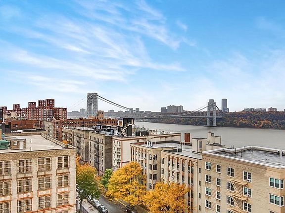 A SINGULAR VIEW! The New York skyline, with--seriously!--the Empire State Building! PLUS local beauties: the majestic Hudson River and George Washington Bridge. This spectacular vista can be yours when you move into the charming one-bedroom apartment that comes with it. Situated on the 11th floor of one of Hudson Heights most desirable buildings, this home is highly affordable, with low monthly maintenance of $652. Bright, southern light beams in through the large, recently installed windows. The living-room and bedroom are generously sized. The updated kitchen includes stainless steel appliances stove, fridge, microwave plus DW. The bathroom is beautifully renovated with carrara marble tiles and flooring. Four closets (one is a double) provide ample storage. The foyer works well as a dining or office area. (It's currently occupied by a child's loft bed, which is not included in the sale). Sorry no dogs. Amenities include 24 hour doorman, community room, resident super and newly landscaped gardens with seating area.