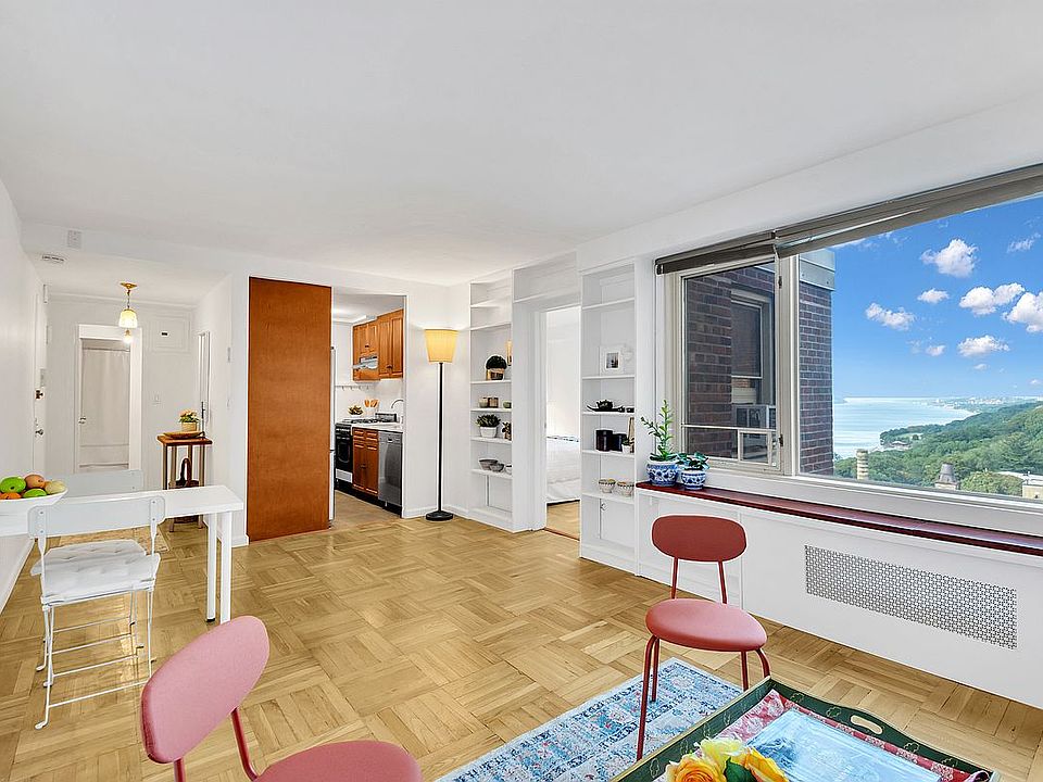 Simply Stunning! Apartment 14S is the truly unique, one-of-a kind one-bedroom home you have been waiting for in Hudson Heights. This exceptional home is the only one-bedroom home at Cabrini Terrace that has full North River views. The Hudson River, the expansive sky, and city views are yours from the living room and bedroom of this lovingly renovated home. The bright and beautifully proportioned living room with a dining area is the focus for happy gatherings or quiet reflection. The generously sized bedroom has two exposures with excellent airflow and a double closet. The fully equipped kitchen (with stainless steel fridge, stove, and dishwasher) is sensibly designed to maximize storage and counter space, with a large pantry closet. The parquet floors gleam with warmth. The renovated bathroom is in excellent condition. The apartment has built-in bookcases, a large closet in the dressing area, and a double closet in the bedroom to keep you organized. This is a very special apartment, one that is not to be missed!