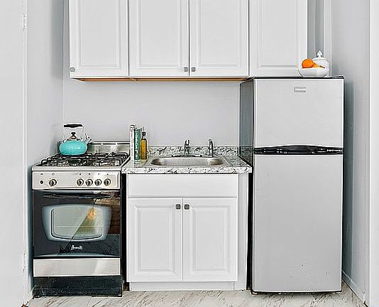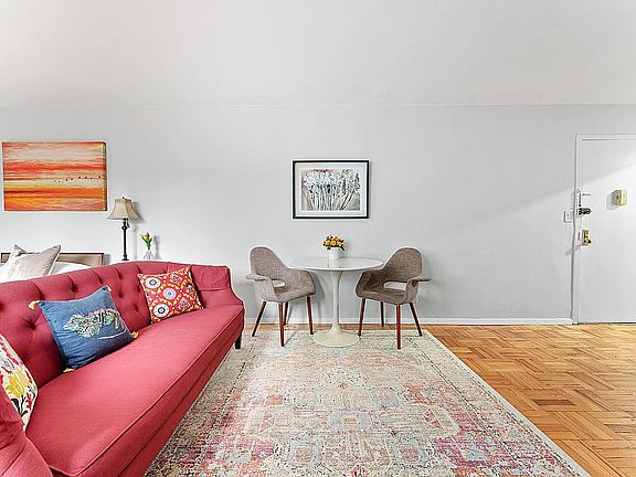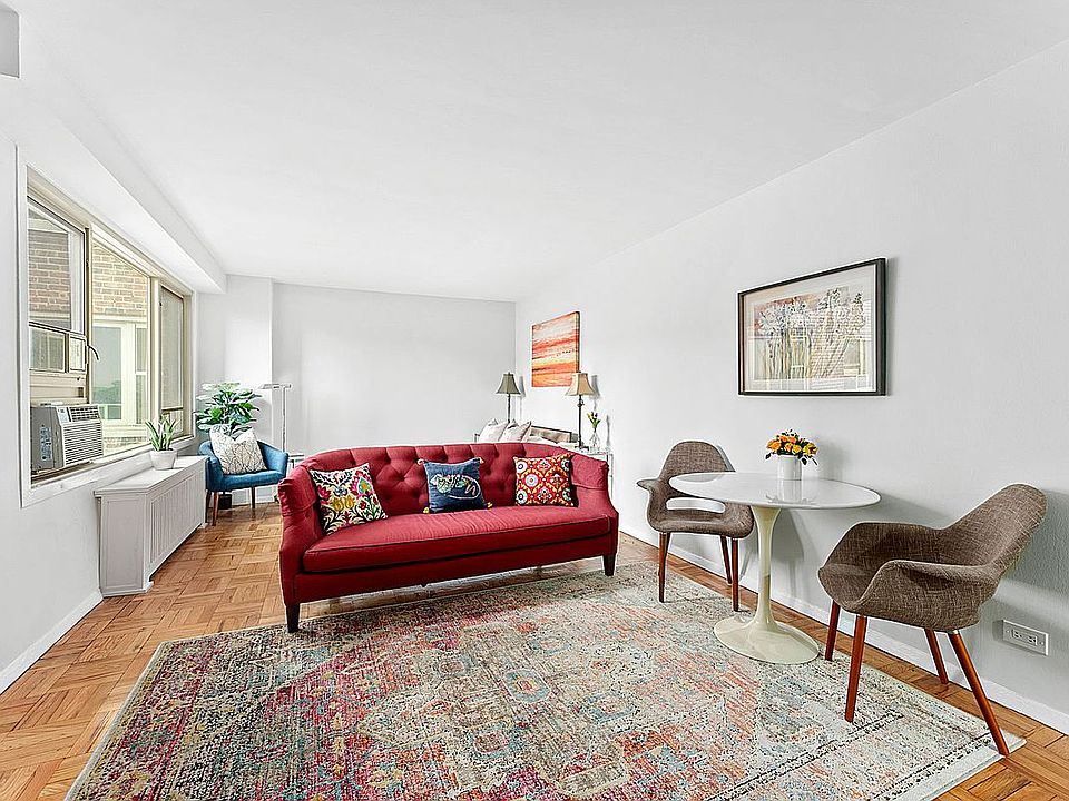 Freshly painted walls and refinished hardwood parquet floors greet you as you enter the space. The bathroom has been updated with reglazed tub, regrouted tiles, recessed medicine cabinet, new vanity and light fixtures. The kitchenette has also been refreshed with newly installed sink fixture and basin, wood cabinets and floor tile that separates the cooking area from the living space.