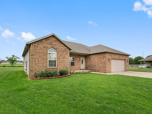 Move-in ready!! Home has been well maintained and offers hardwood flooring, newer carpet (2014) & open concept layout. Kitchen has breakfast bar, all white appliances and pantry cabinet. Spacious master suite with built-ins, walk-in closet, bath with his/her vanity, jetted tub & walk-in shower. Split bedroom layout, front bedroom has cathedral ceiling, both have walk-in closets. Custom shelving in garage. Nice sized composite deck out back and sits on nearly half acre lot. Convenient location with easy access to I-44!! Call today today schedule your private showing.