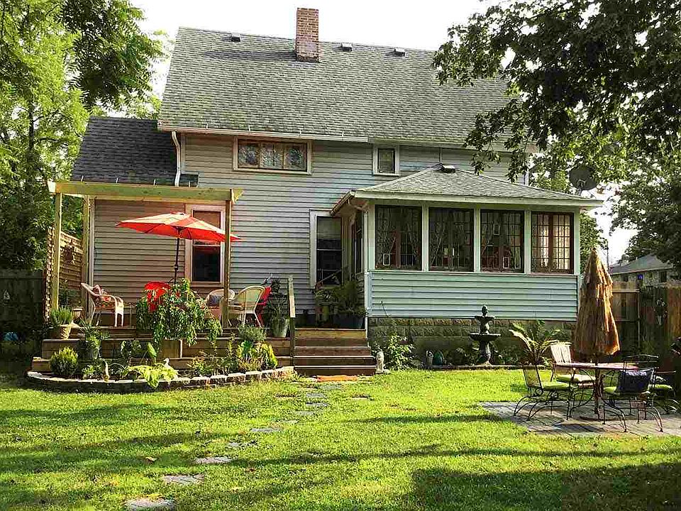 ANGOLA TRADITIONAL WITH STYLE: This comfortable home within walking distance of the university campus has a wonderful rear courtyard sitting area and delightful interior living, stylishly decorated with 4 bedrooms (one on the main level), living room with curved entry from the dining area with bench seating, rear three-season enclosed porch, front-side porch and upstairs landing. The basement has an older-but-working bath with shower and room for storage and an older, detached 6-bay, 18x60 garage across the yard from the main house lets everyone have their own favorite hobby areas.