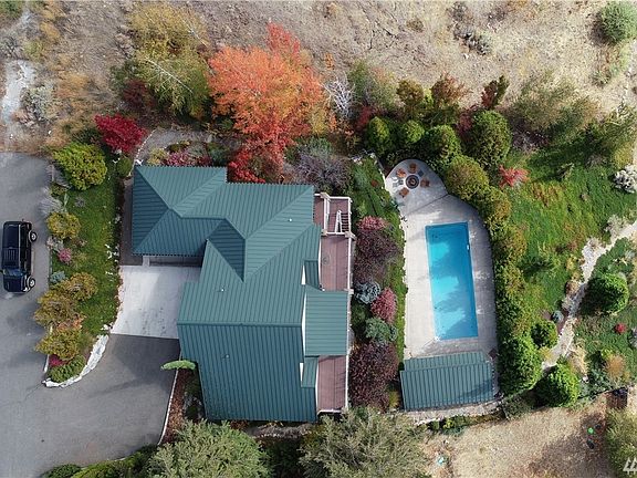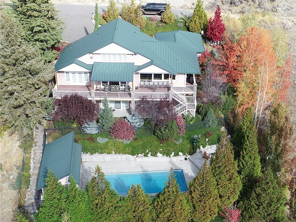 Panoramic views of Lake Chelan. Main level provides open floor plan w/ lg kitchen w/ granite counters, LR w/ propane fireplace, bed, full bath, Master suite w/ tiled shower & tub, walk-in closet, French doors to deck. Lower level provides 2 beds, 2 baths, family room, utility room & game room, walkout to patio and steps to pool. Loft family room w/ 2 adjoining rooms for additional sleeping areas or storage areas. Enjoy your private pool retreat w/ pool house covered patio & propane firepit.