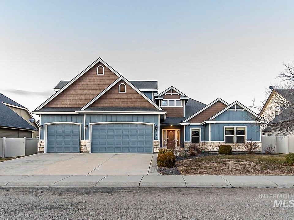 This Meridian one-story home offers granite countertops, and a three-car garage.