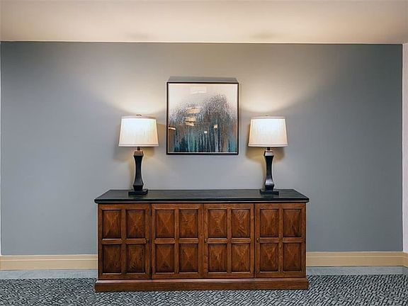 Spacious, bright unit in secure, desirable building in neighborhood setting in the heart of Mt. Lebanon, offering one-floor, low-maintenance living. Eat-in kitchen, large master en suite with walk-in closet. Balcony overlooking beautifully renovated private landscaped courtyard, with sunset (and fireworks!) views. Insulated window treatments, including custom living room drapes. Fee covers taxes, maintenance & upkeep, including landscaping & snow removal, maintenance of common areas, utilities (except phone, but includes basic cable), elevator-accessible reserved parking space in indoor garage (U-15), free laundry (facilities on each floor) & storage unit. Chic redesign recently completed in common areas. 2 elevators. Large parking area for guests. Social room with equipped kitchen, billiard room, and fitness room. Easy walking distance to central Mt. Lebanon shops, restaurants, library, farmers' markets, &T. Buyer pays 2 months maintenance fee at closing for capital fund. No pets