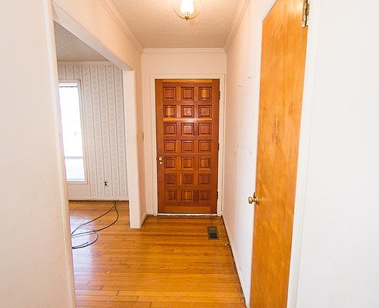 Location, location, location! This brick ranch sits on a large corner lot in close proximity to schools, restaurants, and shopping. Constructed as a 3 bedroom, the previous owner converted a closet in one bedroom to a half bath. This could be easily changed back. Lots of natural light and beautiful hardwood floors in the foyer, hall, and living/dining combo, this home has lots of potential. The level yard is fenced with a storm shelter with cover from the rain, a detached garage/workshop, and 2 concrete driveways. This would be a great starter home.