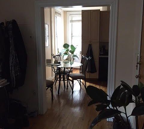 CHARMING 4 ROOM RAILROAD TYPE , This unit has beautiful refinished floors, bay window, decorative mantle ,FRENCH DOOR ,TONS OF LIGHT CORNER APT 6 WINDOWS WALK UP