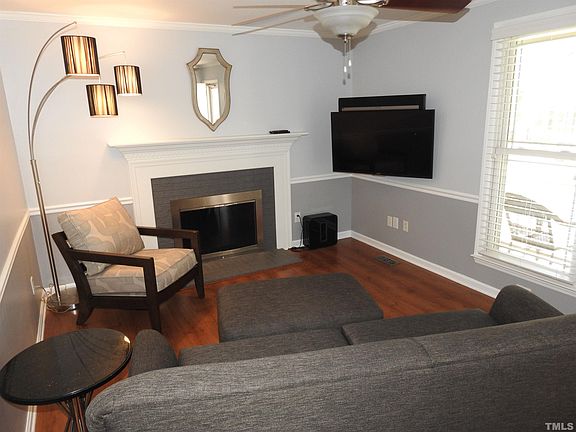 Cute Cape Cod home in Wake Forest! Features a front porch for enjoying the evening sunset. Two bedrooms downstairs/1 bed 1bed/office upstairs. Downstairs bath features a walk in shower with tile and glass doors. The large eat in kitchen features granite countertops, tile flooring and tons of natural light. Single car detached garage with a room above. Enjoy coffee on the beautiful deck or sitting by the fire pit. Large concrete pad in back has many uses. This end of the road home offers much privacy.
