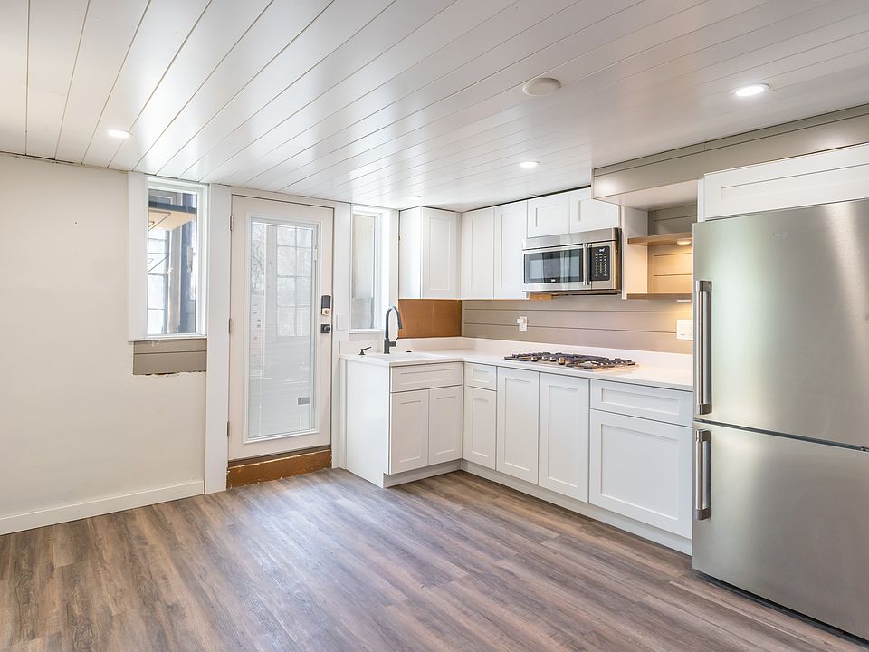 Great simple space entirely remodeled from bathroom, to living, bedroom, and kitchen.