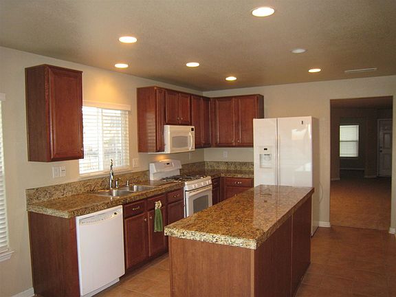 Fabulous 3 bedroom + den Lennar home in Stonefield on one of the largest lots. Brand new carpet! Great room features family room + kitchen with granite counters, cherry stained cabinets, 5 burner range, refrigerator, island, breakfast nook with slider to the back yard. Living room dining room combo. Large master bedroom with walk in closet, garden tub/shower and two sinks. Back yard has large patio, lawn with auto sprinklers, & garden area. Property backs undeveloped land with nice mountain views. A/C