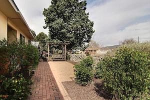 This home will WOW you! Curb view is unassuming, but the inside is whiz-bang impressive. Gleaming hardwood floors, updated kitchen and baths, marble vanity tops, built-in Ikea office system, super size laundry/craft room with floor to ceiling storage, some Pella wood windows, new lighting, paint, trim, enlarged bedroom closets, covered patio, front yard xeriscape designed by Judith Phillips, beautiful backyard retreat with timed sprinklers, fruit trees, gardens... Move in ready including cell shades, front-load washer, dryer and fridge. No disappointments.