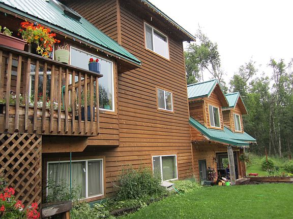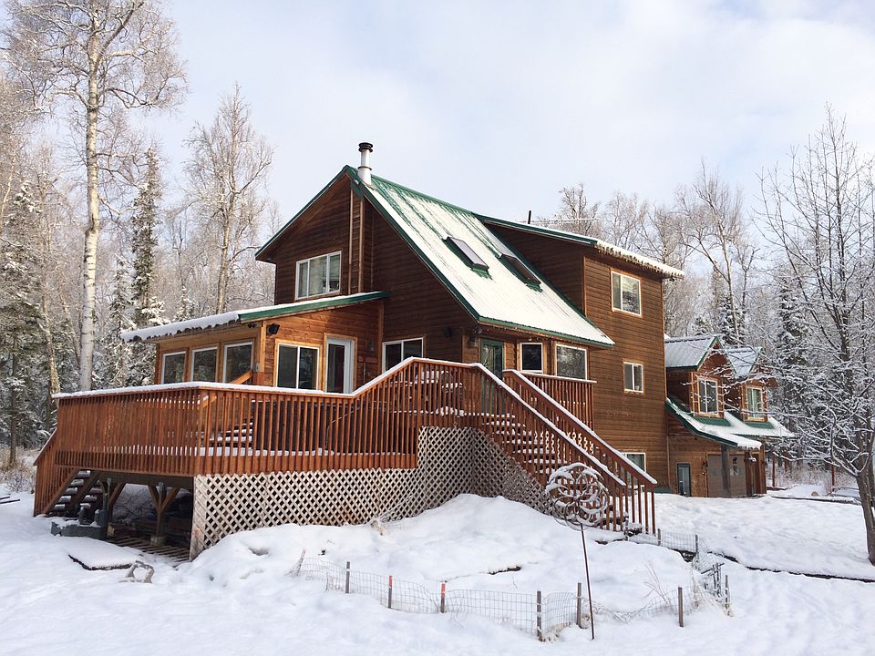 Over 3 acres next to Hatcher Pass! This home is a lifestyle. Smart layout with many windows makes a quiet setting in the woods. Soaring wood ceilings in the dining and living room area. Custom wood features throughout. Long private driveway. Close to many trails in the Hatcher Pass area. 3 separate living areas. Tons of room for everyone. Cool loft area even.