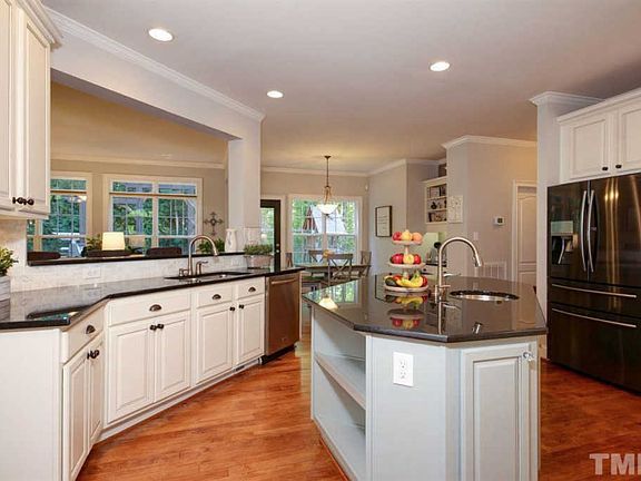 Absolutely stunning & open floor plan in fantastic N Raleigh location! Leesville Schools. Beautiful hardwood floors welcome you into the home & are throughout most of this large family home. Huge open kitchen with an abundance of cabinet space, granite counter tops & center island. First floor bedroom/office & utility rm. Bonus rm, 3 bedrooms & Master bedroom upstairs. Luxurious master bath. Lg back deck overlooks private, fenced backyard. Easy access to I-540, RTP & Raleigh Intl Airport, shopping/dinning