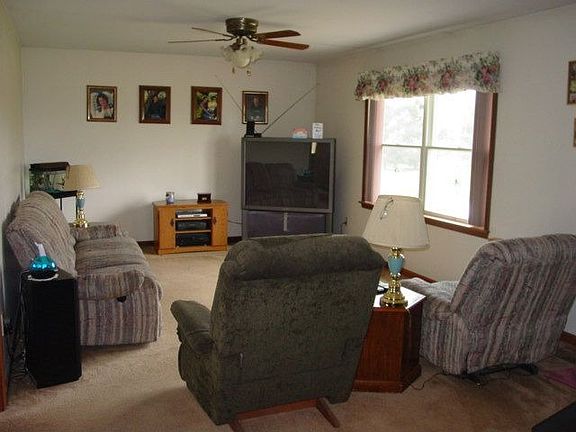 A lovely setting on 5 acres! Lead a happy life in this enjoyable 3 bedroom, 2 bath ranch on enchanting rural site. Idea features include open floor plan, large rooms, eat-in kitchen, formal dining room, living room, full basement with recreation room & laundry, rear deck, open porch & 2.5 car attached garage.