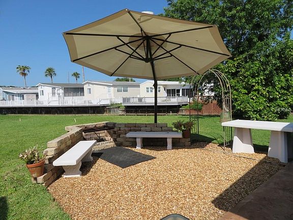 LOVELY 1 BED/1 BATH WELL MAINTAINED IMMACULATE CANAL PROPERTY WITH LOW MAINTENANCE, DECORATIVE CONCRETE DIVEWAY, AND WITHY A NICE ENTERTAINMENT OUTDOOR AREA!! This is a very nice and clean unit which reflects how well it has been taken care of. The property was repainted when purchased, kitchen & bath tiled, carpet was replaced in living room, bedroom, and Florida room addition. Washer/dryer combo was added, furniture replaced, ceiling fans added, faux wood blinds were installed in the main area, mini blinds in the Florida room, and a new A/C Heat Pump in 2017. Let's not forget the added outdoor gathering area with a huge umbrella as well as covered patio in the back of the home looking out to the canal!! All of this located in an active 55+ community with loads of amenities!!