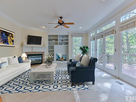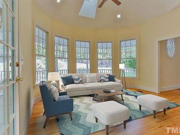 Rare find:A phenomenal Estate lot, an ACRE+, in the gated community of Governors Club, PRICED to sell! Lush landscaping and a canopy of trees provide the serenity and PRIVACY that you deserve. From the gentle, meandering driveway you are greeted with blissful sights and sounds of Nature. Owners suite w/sitting room on 2nd. Finished lower level ready as an in-law suite, theater room, additional office. Start your day and end it on the screened porch and deck . Close to Duke, UNC,RTP, RDU and great medical.