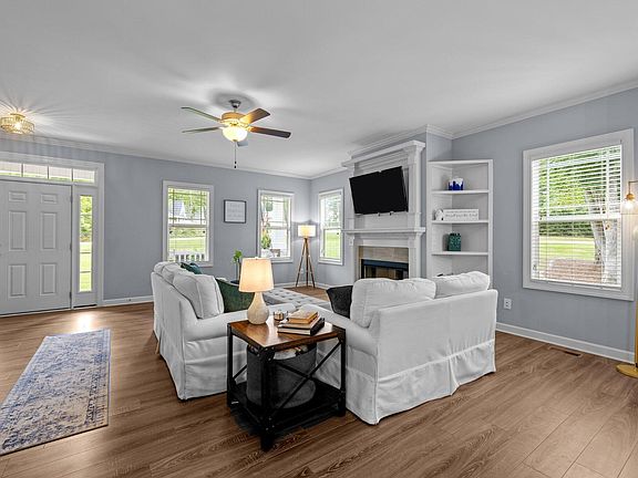 Bring your Rocking chairs to this BETTER THAN NEW Craftsman style home in the Reserve at White Oak Landing. From the moment you walk inside, you will feel at HOME. Open Floor Plan is perfect for entertaining family and friends. Foyer Flows into the Family Room with a gas log fireplace. Kitchen boasts white cabinets, backsplash, SS appliances and tons of storage. Walk in Pantry! Large island is perfect for quick meals. Dining Room is just off the Kitchen and has tons of windows that lets the natural light stream in. Updated fixtures throughout. Three Bedrooms, a Laundry Room, and a Bonus Room (could be a 4th bedroom) upstairs. Owners Suite is Spacious (14x15) and is an amazing spot to relax at the end of the day. Owners Bath has soaking tub, shower, and a walk in closet. Two car FINISHED garage with a drop zone as you enter. Screen Porch has serene wooded views. Entertaining/firepit area with string lights in backyard is ready for marshmallows and fall evenings. Tucked back in the neighborhood and perfectly placed on a large corner lot on a culdesac street!! Close to everything! Minutes From White Oak Shopping, Hospitals, Dining, and Highway Access!