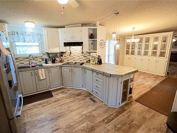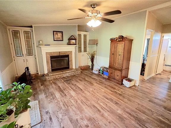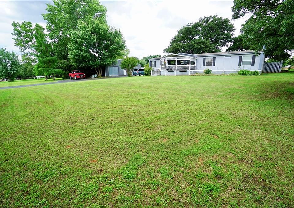 Manufactured home on nearly 2 acres. Very well maintained acreage with 4 car shop/barn w/ electric. Home has so many features! Asphalt drive w/ additional parking, the barn/shop, huge yard, privacy. Front and back covered porches, new flooring in living area and dining. Built in hutches - large kitchen w/ microwave, built in range, dishwasher. Mud room in the back with half bath, laundry room. Master bedroom is separate from other bedrooms w/ large walk-in suite - double vanities, corner tub, separate shower. Huge closet. Other two bedrooms share a full bath. Beautiful acreage w/ enough yard to roam and feel the country.