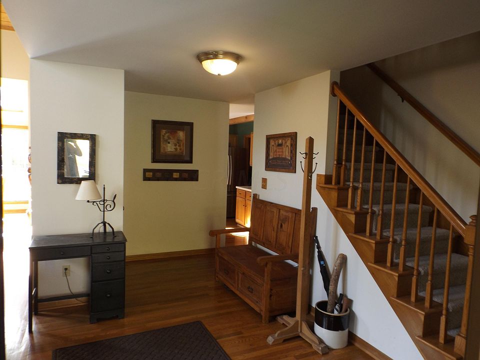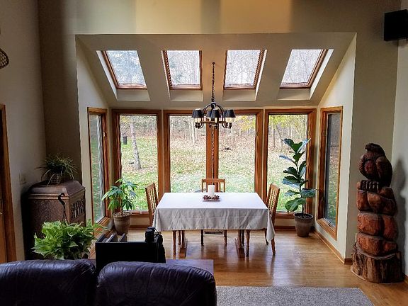 Surrounded by 10 acres of mature woods, trails, and wildlife, this contemporary Amish built home has vaulted cedar ceilings throughout, solid 6 panel wood doors, oak cabinetry. 2nd floor master suite, has a whirlpool tub, ceramic tile. Open loft off master. 1st floor bedrooms joined by a full bath. New kitchen counter tops. All SS appliances, Bosch dishwasher, 2 GE ovens, 1 with convection baking, GE Advantium microwave. Great room has wood burning fireplace, dining area surrounded by floor to ceiling windows and skylights. Porch, 3 season room, open deck, and an additional covered deck already wired for hot tub or a summer kitchen. Partially finished basement has rec room / office or den, laundry, and storage. 2 car attached garage - heated. 13 Minutes from I-270