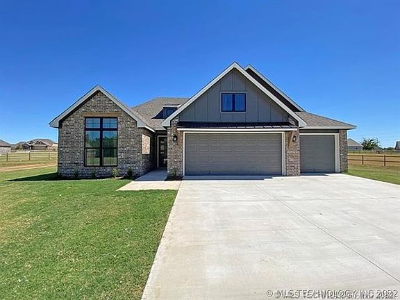 Move in ready-quick closing available! Quick commute close to Hwy 75 - 7 minutes to Tulsa Airport 30 minutes to Bartlesville, 15 minutes to Tulsa. .6 Acre lot. Owasso Schools (Bailey Elementary). Over $36K in upgrades! Oversized concrete driveway. Cedar stained shutters, headers, posts and brackets. Separate vanities with linen cabinet-centered. Master shower tiled. Luxury vinyl in entry, living, kitchen/nook and hallways. Two beams added to vaulted living. Shiplap hood with stained base trim and built in microwave. Corner Floating Shelves in Kitchen. Upgraded Granite. Black windows in front. Door hardware ORB finish. Prewire & Brace for Ceiling Fan to Back Patio. Bathroom Vanity Lights ORB wall mount Fixtures. Enlarged Rear Porch. 5' shower. Enlarged Utility. Painted Cabinetry. U-Shaped Kitchen with Corner Pantry. Vault Living Room. Mahogany Front Door. Cabinet, Rod & Shelf to Utility Room. Out of Seasons closet in Master. 42" Upper Cabinets. Entry Pendant LED. Additional LEDs to Master Closet, Pantry, Kitchen island. All Surface Fixtures to LED. Bath Wall Mounts to LED in Master Shower, Bath #2 & #3 Tub/Shower Combos. Silgranit Single Bowl Undermount Kitchen Sink. Classic Stainless Steel Gas Appliances. 2 garage door openers with keypads. Black out Cellular Shades in 3 bedrooms.