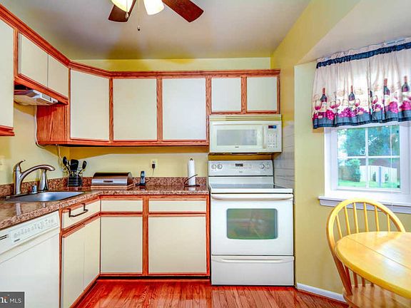 End unit townhouse, main level features large eating kitchen with hardwood floors, living, dining room, sliding door leads to deck and fenced backyard, basement with rec room, fireplace and den.