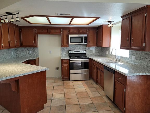 This one will not last long! Fresh paint and stained cabinets throughout, large kitchen, Venetian French doors in kitchen, fireplace in family room. Master bath has double sinks and walk in closet, over-sized shower, and private door to the back yard. Tile in living areas and vinyl flooring in bedrooms. Corner lot, schools, freeway, gas stations, convenience shopping, entertainment, restaurants all close by! Washer and Dryer are NOT included. Owner pays trash and sewage. Gardener included. Alarm system included. Renters insurance with pet coverage if applicable required.