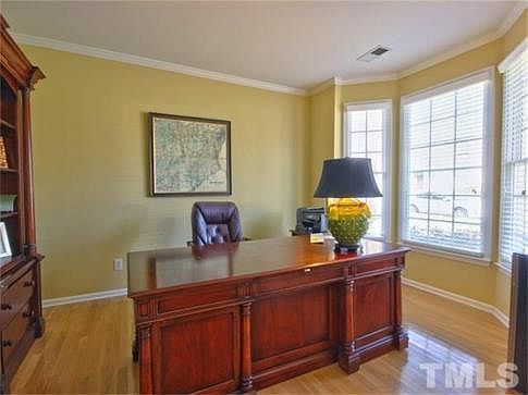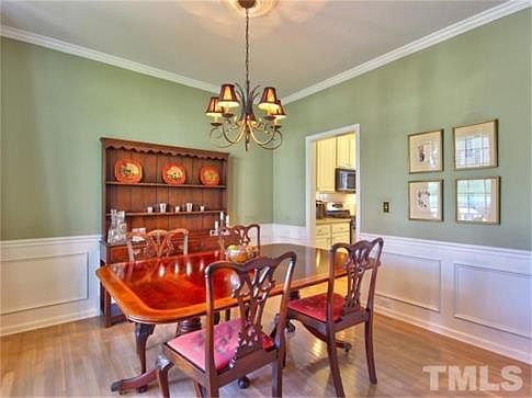 Great North Raleigh Location. Beautiful 5 bedroom 2.5 bath home convenient walk to shopping and restaurants.Entertain family and friends in the Updated Kitchen with stainless Appliances including gas range open to Family Room. Main floor Office with Bay Window and French Doors. Formal Dining room with wainscoting and chandelier medallion. Amazing Bonus/Den with vaulted ceilings on 1st floor. Master Suite plus 4 additional bedrooms on second floor. Wood deck overlooking large fully fenced back yard