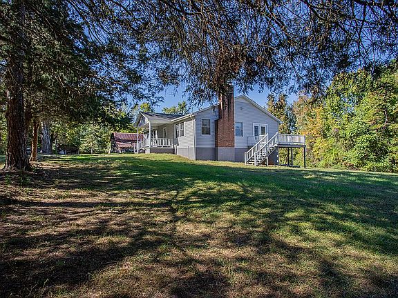 This property is absolutely gorgeous! It features 45+ acres of total privacy! It has a pond behind the home, a creek bordering the back of the property, and several outbuildings including two older barns and a 4-stall animal shed with fenced areas surrounding it. This property also features a 1600 square foot home that is in excellent condition! Inside the home you'll find a lovely open floor plan with a nice sized kitchen, a brick fireplace in the living room, a dining area, and plenty of windows letting in a ton of natural light. All of the bedrooms are a good size and the primary bedroom is very large with two closets and an attached full bathroom. There's also a full, walk-out basement that is partially finished with a kitchenette, a full bath, double doors leading to the backyard with a patio, a workshop space, storage and shelving, and a wood stove. With a side deck, back patio, and covered front porch, you'll have plenty of places to sit and watch the fall colors unfold in your private oasis! Call the owner today for a tour! This home will not last! Realtors are warmly welcome and this is an equal housing opportunity.