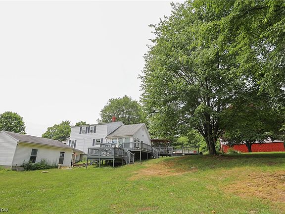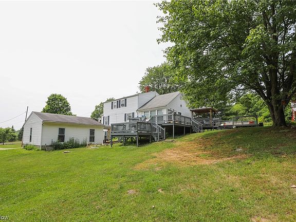 Welcome to 9001 Tallmadge Road! This lovely country home is offered for sale for the first time in over 50 years. The home features 2,364 Sq. ft., 4 bedrooms with 2.5 bathrooms including the 1st floor primary suite with walk-in closet and large updated bathroom. There is a living room at the front of the house with beautiful hardwood floors, spacious kitchen with island, gas stove, newer refrigerator, and beautiful original hardwood floors. You will also find a dining room perfect for large family dinners, a half bathroom, and a 4-seasons sunroom/ morning room that could be used as a den on the 1st floor. Upstairs there are 3 bedrooms, and a full bathroom. The home also has a partial basement that is a walk-out. Outside there is a 2-car detached garage, rear deck, concrete patio, and large front porch. Additionally, there is an old bank barn with 4 stalls, a pavilion, and a storage shed. All of this sits on 5.74 beautiful acres in Diamond Ohio. Schedule your showing today!