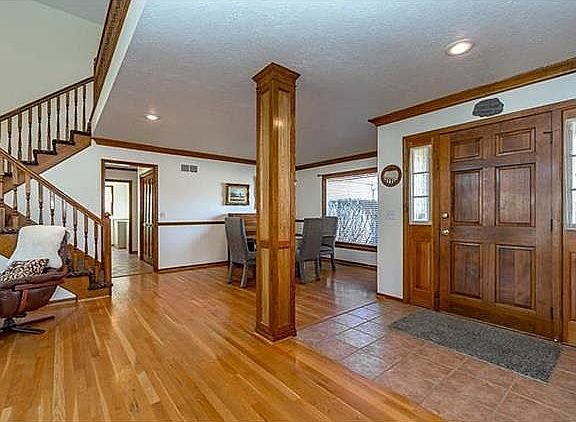 Breathtaking 4 BR 3 BA, main lvl features gorgeous hardwood cedar floors, floor to ceiling windows, a brick fire place in the great RM, formal dining RM, a huge eat-in kitchen with beautiful natural stained cabinets, built- in wet bar, work desk, a built-in grill, and a fourth bedroom that can be used as a office or in-law quarters. On the 2nd level is a large master suite with vaulted ceilings, Jacuzzi tub, double sinks, ceramic tiled shower, and walk-in closet. 2 addit'l large bedrooms adjoined by Hollywood bath.