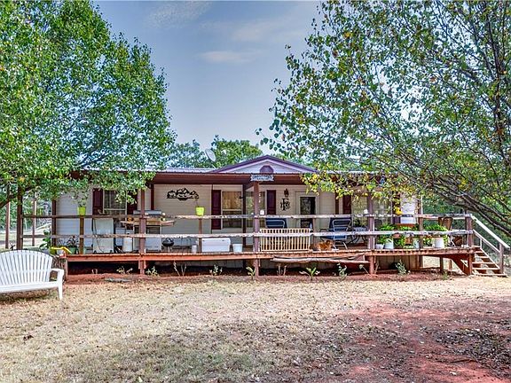 Want Seclusion? This 3 bedroom 2 bath mobile home sits on 12.6 acres in a very wooded area hidden from the road. Home is in really good shape and has a 440 square foot covered deck on the front. There is also a 30 X 40 metal shop with concrete floor, electric, well insulated and heated. The owner built a bar in the shop and it also has a bathroom that is plumbed, but not finished. Flat safe storm shelter in floor of shop. There is also a 36 X 40 X 16 foot tall carport to house a large RV, boat or just your cars. Property is fenced and cross fenced. Has a couple of corrals for animals. Propane operates only the stove. 1 pond on the property.