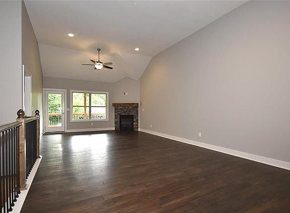 Open floor plan with a gas fireplace, wood floors and vaulted ceilings. The eat-in kitchen includes a large kitchen island, stained cabinets, a stove, microwave and dishwasher! Tile bathrooms, master bedroom with a walk-in closet and tile walk-in shower. Basement with daylight windows! North Kansas City School district! Great location - nearby shopping, restaurants and highway access!
