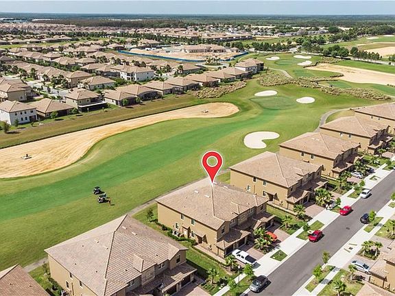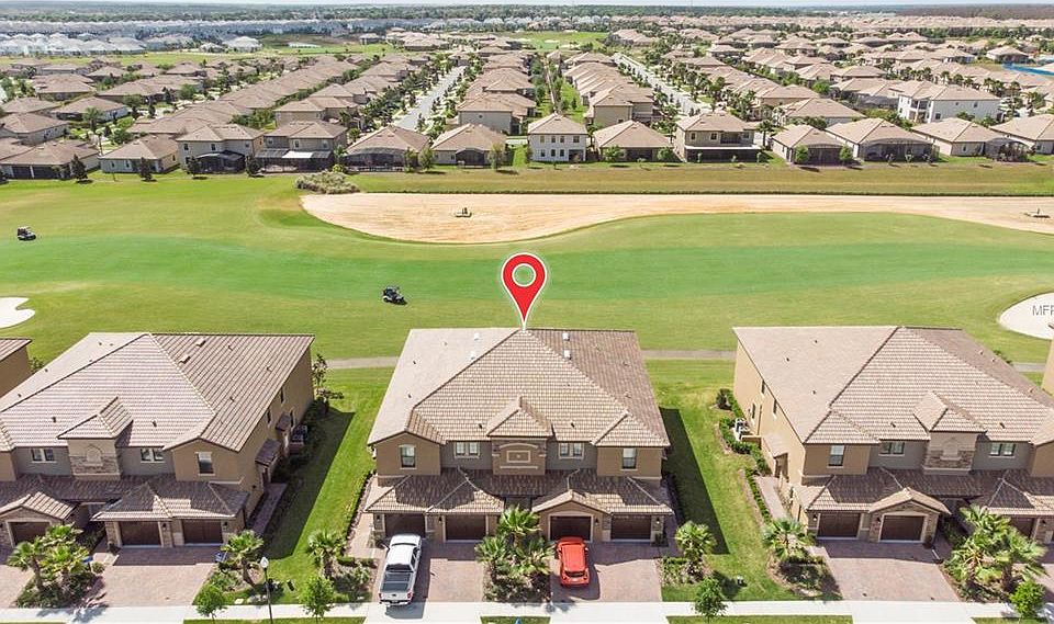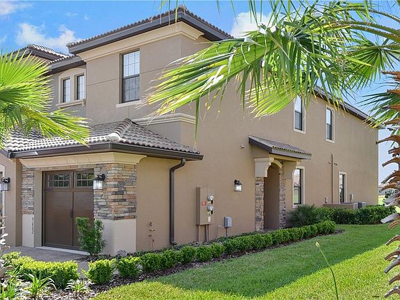 Golf course living at a price that can't be beat! Not even two years old! As soon as you walk in the door you feel right at home, this ground floor condo offers an excellent floorplan, a trendy color scheme, and PHENOMENAL golf frontage on Championsgate Golf Club. The exterior of the building has a traditional barrel tile roof, gorgeous stone work, and a side entry for privacy. Once you enter the home a hallway functions as a mud room with the garage entrance conveniently leading to the same area. Floorplan features include an indoor laundry room, split floor plan, and open living area with immediate golf course views! The interior of the home has been professional painted throughout with a gorgeous accent wall in the main living area, this paired with a light and bring kitchen and beautiful "Slate" appliances bring the home together beautifully. The home boasts upgraded ceramic tile throughout the wet and living areas and carpet in the bedrooms for a homey feel and easy to keep clean! An oversized single car garage and paver driveway offers plenty of parking space and storage for this two-bedroom condo. Taexx In wall pest control system makes for very easy pest control treatments. Call for your private showing today! Furniture available in addition to the sales price.