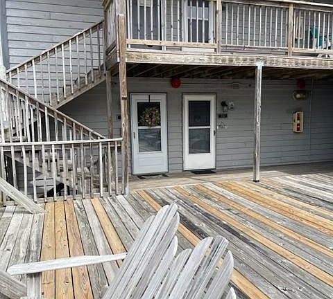 This efficiency is as large as some one bedroom units. Just a short block to the beach and ocean. Individual storage units perfect for the beach chairs, boogey boards and sand paraphernalia. Outdoor shower rinses the sand away. Under building parking for one vehicle. The unit itself has a full kitchen, pantry, washer/dryer stack, and living-bedroom combo. Large shared deck for watching fireworks, picnics, etc. Ocean views from the private balcony! Back on market! Buyer unable to get financing...