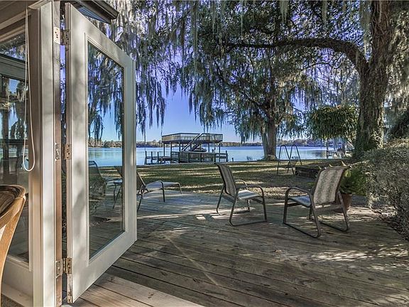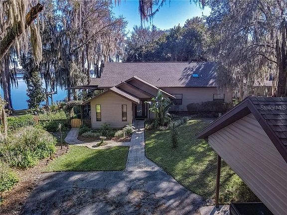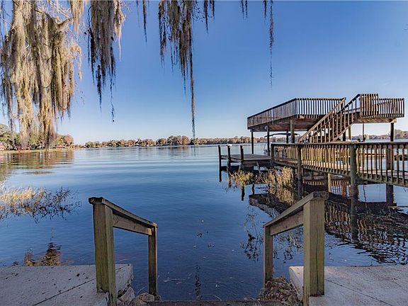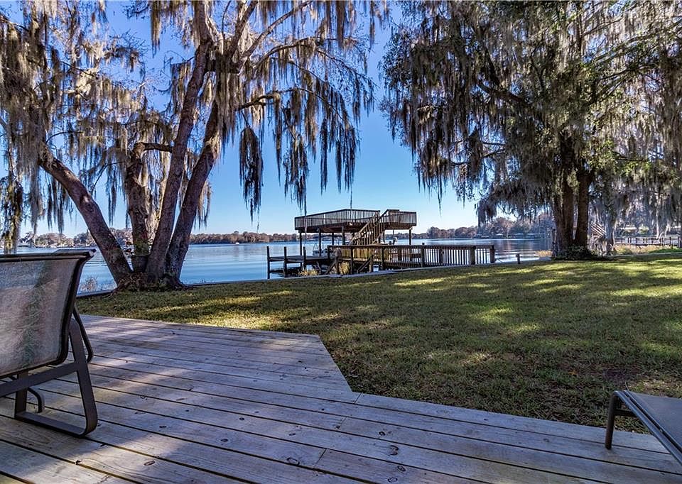 LAKE FRONTAGE! This charming Lakefront home boasts a Spectacular "One of Kind" view of Lake Tsala Apopka. This Beautiful 4 bedroom, 3 Bathroom home features an breathtaking view of the open lake. The Master suite also overlooks a grand view of the water. The spacious living room has a wood burning fireplace with french doors and large windows overlooking and opening up to the outdoor patio and the private expansive views of paradise. The kitchen overlooks the outdoor entertainment patio with a view of your private dock featuring a boat lift, 2 boat slips and a jet ski lift. The large upper dock is a great entertainment feature. The backyard is fenced with a concrete seawall. The detached 2 car carport has a large storage garage to store your outdoor kayak, paddle boards and fishing gear. The home and carport have a 2018 new roof. Enjoy this quiet friendly neighborhood that is truly a hidden gem on the lake. Just 5 minutes to access the Withlacoochee State trail for biking and walking. This lake front home is very impressive with wonderful amenities.