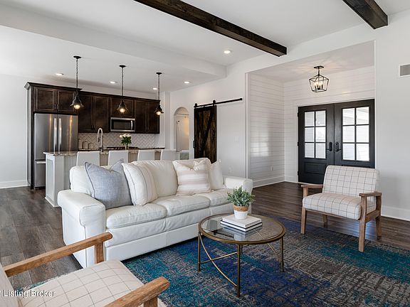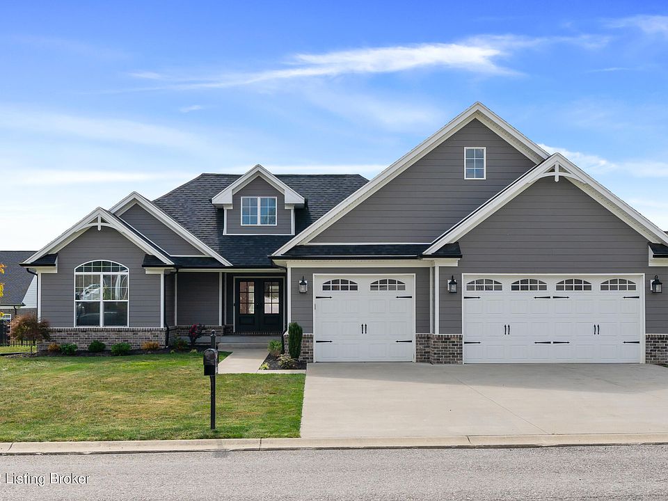 Fabulous opportunity to own this stylish, move-in ready ranch home located on a cul de sac street just minutes from Charlestown State Park! Built in 2019, beautiful curb appeal and an inviting front porch provide a welcoming entry to this home. Once inside, you'll be greeted by the light-filled living space with high ceilings, beams, and custom trim work. The spacious living room opens to the Chef's kitchen boasting custom cabinetry, a large center island, tiled backsplash, granite countertops, and stainless steel appliances including a gas range, and an expansive walk-in pantry. The living room also provides access to your outdoor living space complete with covered patio, built-in seating and flower boxes, and a fully fenced backyard. Back inside, you'll find the private Owner's Suite with tray ceiling and a spa-like en-suite bathroom with dual vanity and stunning walk-in shower. The walk-in closet features a custom built-in storage system. Also on the first level are two additional bedrooms, a full bathroom, and access to the oversized 3 car attached garage. The finished basement affords the new owner endless opportunities with a family room with fireplace, large office/play area with built-in storage, spacious laundry room, full bath, and an additional bedroom. Plenty of storage space completes this level. The home is equipped with Wemo smart switches throughout if you would like to control your lighting with Alexa and other Smart Home apps.