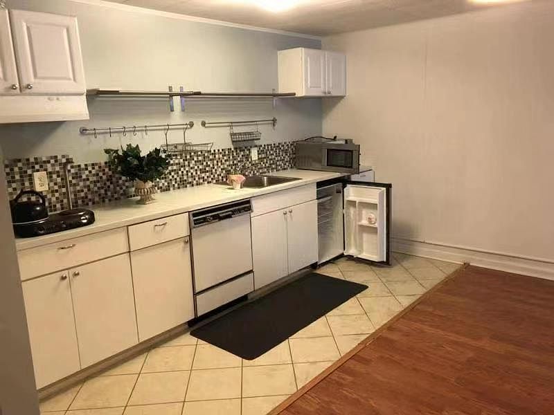 3 large bedrooms with closets on main level. Fully equipped kitchen with high end cabinets and stainless steel appliances with open concept. Hardwood floors through the space. Dinning room with view of the garden that has a slate patio with chairs and tables and space for a grill. Lower level in law space with bedroom and bar. Office/family room. Laundry room with updated machines. Storage room.
