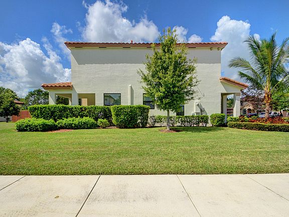 Fabulous corner lot home with large side yard. Gated community is located close to Wellington Green Mall, quick access to Florida Turnpike. Great school zone. Open the door to this breathtaking 2-story, 4 bedrooms, 3 bath home and step into luxury features. Walk past the covered entryway thru and into the spacious & elegantly designed living space featuring dramatic 9-foot ceilings in the Living and Family Room areas. You'll feel right at home in the open Kitchen. Directly connecting to the kitchen is a covered patio. The wide open Family room provides convenient access to a 1st floor bedroom, full bath and Laundry Room featuring a large-capacity washer & dryer. 2nd floor Master Suite featuring extra large walk-in closet, master bath, double sink, roman tub and glass-enclosed shower.