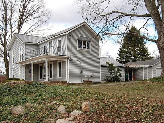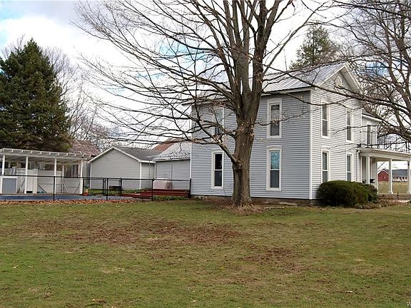 Village Edge, quiet road and a wonderful Country Home with 4.47 Acres, newer 2 car det garage, inground pool, two barns, and Metal Roof. 1st floor family/music room could be a 4th bedroom. Upstairs bath was added as well as the master bedroom with vaulted ceiling, door to a balcony and walk-in closet. All nice sized rooms. Full bath on 1st floor and also 1st floor laundry. SGD from Kit with gas potbelly stove to deck with canvas awning and pool. Covered Changing room for heated pool. Ent/mud rm with a separate storage room from breezeway and garage. Canvas awning over Plenty of room for gardening. Circular driveway. Great location with easy access to the Village of Springville for shopping, churches and all amenities. Excellent School System.