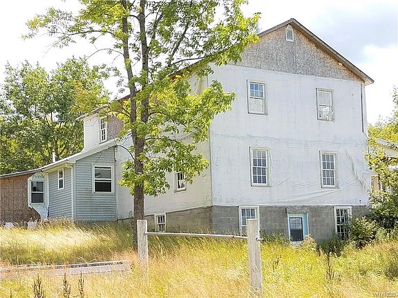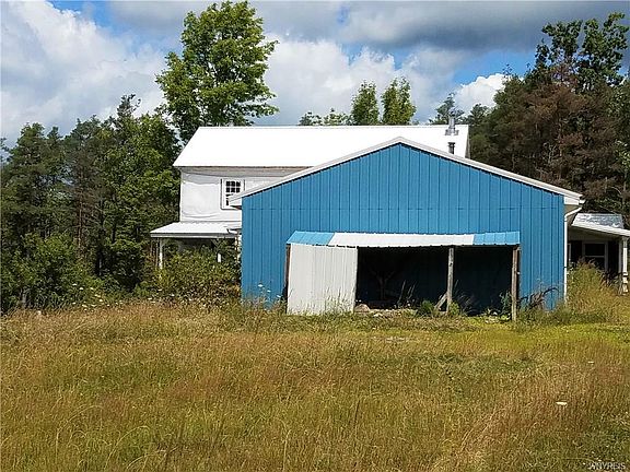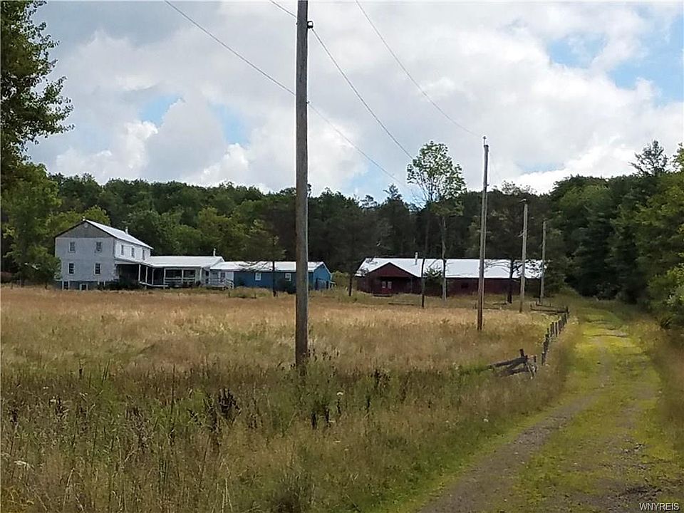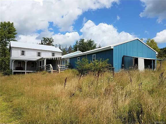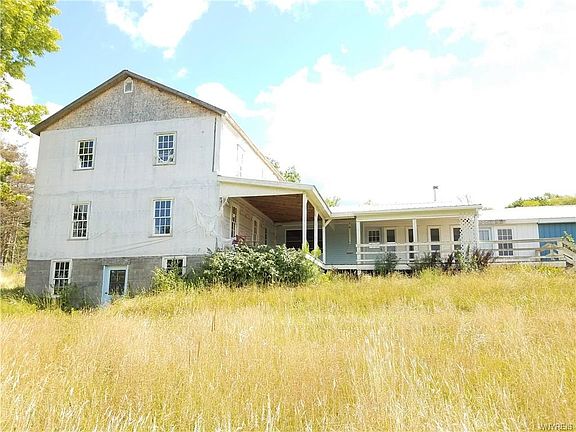 Opportunity for Farmette in the country or an Organic Opportunity! 50 acres, pond, pastures, barn & shop, chicken coop, additional shed and nearly 3000 sq ft. farmhouse with 5-7 bdrms. Great view! Possibilities are endless! Many acres of hardwoods offer fantastic hunting! Near State lands, Swain Ski center & Letchworth State Park. Cash or creative financing required. No central heat source. Needs electric re-established & bathrooms redone. Square footage differs from tax records due to an uncounted addition. Square footage was calculated by actual room measurements.