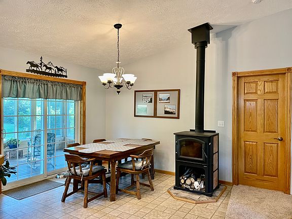 Nestled along the Minnechaduza Creek just west of Valentine is this rare property! Situated on 26.59 acres is this nearly 1,700 sqft 4 bedroom home on a partially finished basement, adding 800+ sqft living space, including an attached three car garage, another detached garage, horse barn with pasture, and live water. Large windows, throughout the house and basement, allow for extra light.The home was built in 2003 and features an open concept floor plan. The large living room greets you at the front entry and the kitchen includes a raised center island, oak cabinetry, and recently updated counter tops. The adjacent dining area accesses the 3 seasons room as well as contains a wood burning stove.There is a private master suite with large bedroom, en suite bath, and walk in closet. At the other end of the home is a remodeled bath, 2 bedrooms, laundry area, and garage entry. There is an attached (2.5 car) garage, with an additional attached garage and wheelchair lift. There is a ramp from the garage to the 3 seasons room.The full basement is partially finished with a bedroom, large family living area, currently used as a sewing room, with custom built-ins, and the room at the bottom of the stairs now being used as an exercise room. All tastefully done with weathered, waterproof laminate flooring and white pressed tin ceiling tiles. The remaining part of the basement is utilized as storage and contains all the mechanical components of the home, in addition to a storm/cellar room.There is a double detached garage presently used as a mower shed, but would make a great workshop. Plus, the property is horse ready with a 34'x36' stable with 10' overhang on the south side open to the coral. There are 3 stalls, 2 overhead doors, and extra storage space. Two lower pastures are electric fenced, the upper pasture is barbed wire, and water is provided to both pastures by two livestock tanks.The Minnechaduza creek winds through the north part of the property with established trees along the creek bottom creating an ideal habitat for wildlife. Whitetail deer, turkeys, and ducks are commonly sighted. There is also a fishing pond that has been previously stocked (and for several years is now self-sustaining) established garden area, and several fruit trees have been planted. You will be impressed with all this property has to offer so close to Valentine!