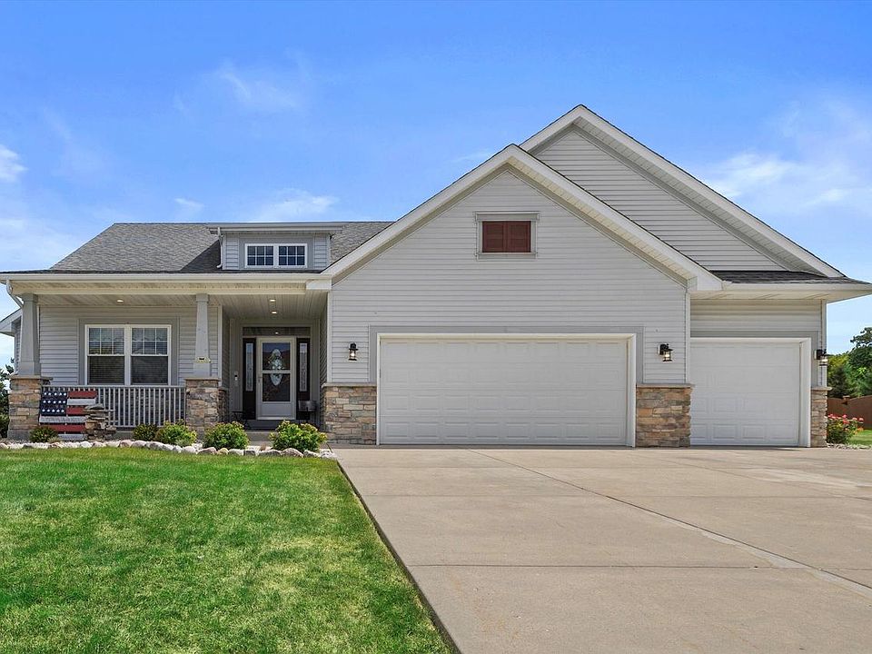 Welcome home to this beautiful 3 bedroom, 2.5 bath ranch in Pleasant Prairie's sought-after Creekside Crossing subdivision. You'll love the open floor plan, perfect for entertaining, complete with a cozy gas fireplace and a spacious eat-in kitchen with plenty of cabinets. The primary suite is a true retreat with a walk-in closet and a spa-like bath featuring a luxury walk-in shower and heated floors. Two additional bedrooms and a full bath provide space for family or guests. The partially finished basement offers even more room to enjoy, with a bar, half bath, and egress window. Step outside to relax on the composite deck with awning, store your extras in the 8x10 shed, and take in the peaceful farmland views from your half-acre lot. Updates listed in Private Remarks.