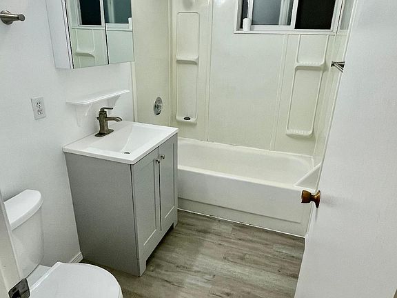 Live across the street from West Crest Park in a quiet 4-plex on a dead-end street and just a short distance from Westwood Village shopping center. Hip coffee shop within walking distance. Updated studio apartment with spacious spare room and big back yard. Unit has big windows in the living room, kitchen has dishwasher and cabinets freshly updated, newer laminate floors, new light fixtures and bathroom updated with new floor, vanity and toilet. $45 application fee. 1 year lease. Cats okay. Available now. Laundry - shared coin-op laundry on-site Parking - one free reserved spot Rent - $1050 per month Deposit - $1050 Tenant pays utilities One year