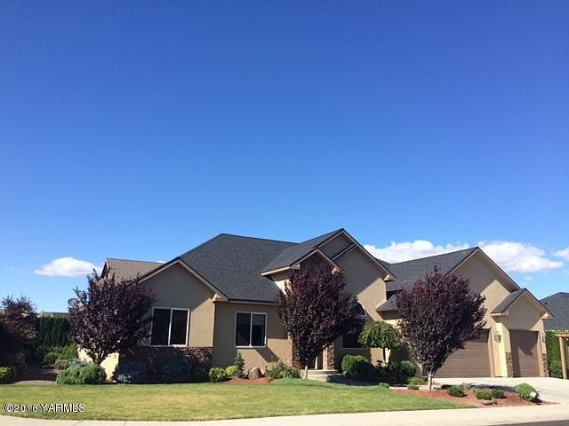This elegant home on beautifully landscaped corner lot features 15' ceilings, pillared archways, tile and granite finishes. Main floor has all bedrooms and baths, upstairs is large media room.
