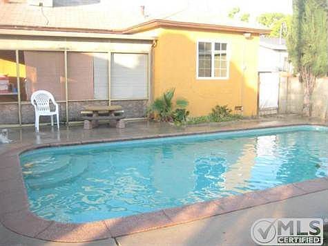 Beautiful Arleta home located in a nice tree lined street. Home features 3 good sized bedrooms and 2 bathrooms. 1,232 built sqft and 5,998 lot. Cozy living room/ dining area with original wood floors, ceiling fans and newer paint. Dining area with sliding doors leading to a nice enclosed patio. Kitchen with ceramic counters, plenty of cabinet space, ceramic floors, and breakfast area. All three bedrooms are very spacious, offering wood floors ceiling fans and newer paint. Two clean well-kept bathrooms. Dual pane windows throughout home. Home exterior had been freshly painted. Central heat and air. Beautiful back yard with swimming pool. Detached two car garage. RV access.