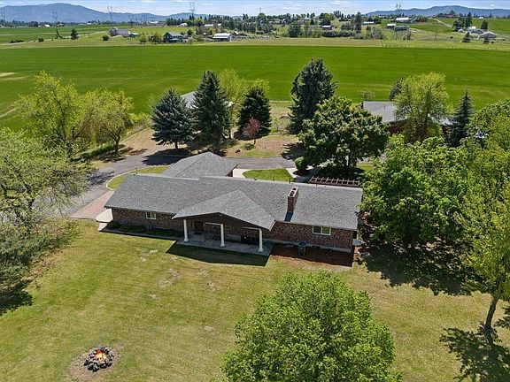 Escape to your own private retreat with this stunning brick rancher situated atop a knoll, offering panoramic views. Boasting over 4,200 sq. ft. of living space, including a sprawling 'party room' that could be used for a home office, exercise studio, homeschooling haven, or craft room, the possibilities are endless. The seamless flow between the kitchen, dining, & family areas creates an inviting atmosphere perfect for gatherings large and small. Unwind in the main floor primary suite, complete w/ a spacious walk-in closet, bathroom, and a cozy fireplace. Downstairs, discover two additional bedrooms, two baths, a family room w/ fireplace, & a convenient kitchenette w/ outside entry, offering flexible living options for guests or multigenerational living. Outside, the grounds are as impressive as the home itself, featuring two expansive outbuildings – one measuring 90x50 with concrete floors, bathroom, office and automotive paint room. Second building is 25x50 and would work perfectly for large animals.