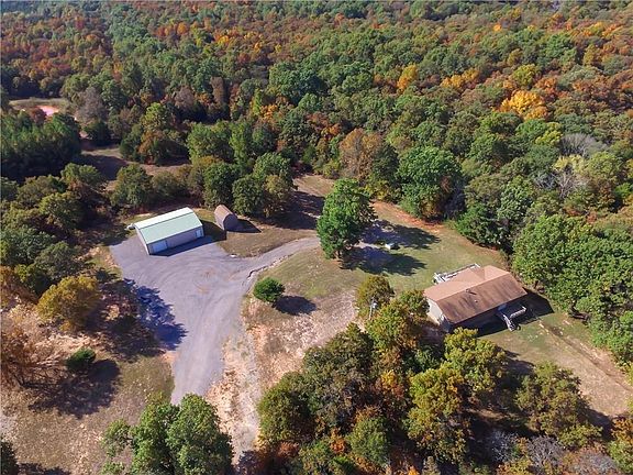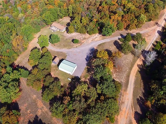 COUNTRY RETREAT! This neat country home is off the grid and hidden from the road in a wooded scenic environment. Home is very well insulated and has all new carpet and smart core 100% waterproof vinyl flooring and all new interior doors and new huge sliding glass patio door with blinds inside. This house was originally 4 bedroom, but one bedroom was converted into a huge master closet for the master bedroom but could easily be converted back into a bedroom. Awesome shower in the master bath and deck on front and back of house. 40 yr. architectural style shingles installed in 2007. Whirlpool frig to stay with the house. 30 X 40 metal insulated shop with electric and heat/air. Shop also has bar built in with bar stool. Bathroom area with drains ready to be plumbed. Also has storm shelter in shop floor. 30 amp RV hookup by shop. Property also has a 12 X 16 storage building. Great property and you will LOVE the location, but you better hurry, this one will go fast.