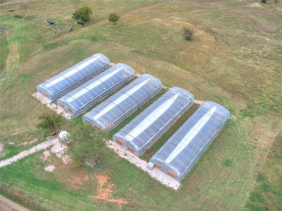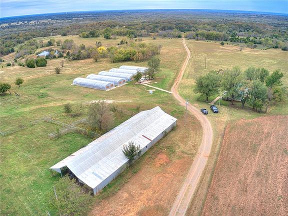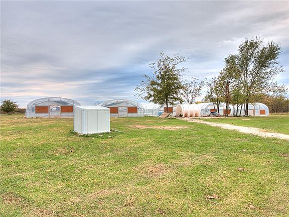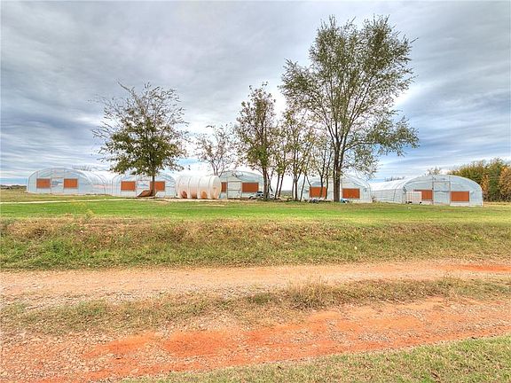 Fully fenced 80 acres (MOL) rural property in Lincoln county. Secluded with gated entry. This property offers several amenities, including a 850 sqft (mol) livable 2 beds /1 bath house, 5x2000 sqft green houses, 6500 sqft hay barn. 1200amp 3 phase electrical service is in the process of being installed. There are two water wells on the property, the newer well was installed 2021. OG&E 3 phase power lines running along the property, which makes it easy to upgrade for more amperage. The land is mostly flat and clear, with a few trees. The pond is stocked. There is no restrictions on the property, great opportunity for commercial cannabis business, running cattle, or farming. The potential is endless.