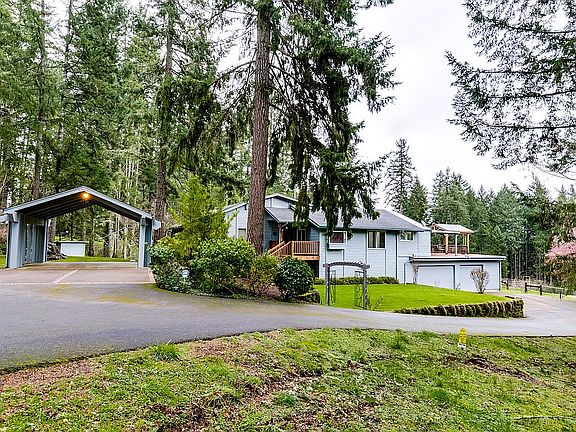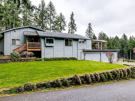 Just appraised for $520k, this beautiful horse property on ~5 acres is perfect for toys & animals. You'll find a 2-4 stall horse barn(20x30), pastures, 3-car garage/shop (~1148sf)+2-car carport. Updated kitchen has custom cabinets, granite & ss applncs. The vaulted, lodge-style living room has wood floors. Dine or relax in the tiled sunroom. One bdrm has a loft w/addtl small 4th bdrm. Multiple covered decks to enjoy the views!