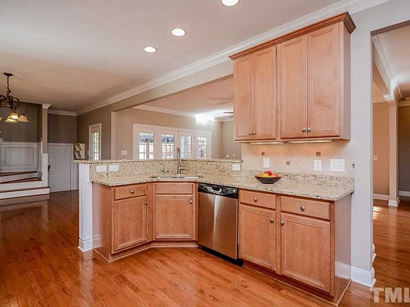 Gorgeous home with 4 BDR + 2 Bonus rooms! Kitchen has S/S appliances and granite counters. Wainscoting in Dining room. Master BDR on 1st floor has a trey ceiling and walk-in closet. 2 sets of oak stairs. One set leads to 3 more bedrooms, bonus room and full bath. Second set of stairs leads to 2nd bonus over garage with built-in shelving, window seat, and a full bath. Back of home has covered porch and a pergola. Backyard also has a storage shed custom built to match the house and a fire pit area!